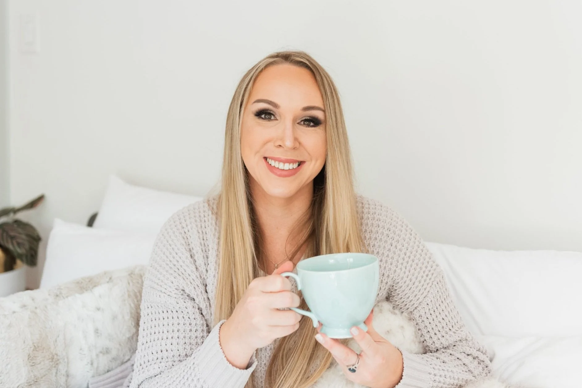 The first of two locations we chose to shoot at in Des Moines was a private residence. Elyse loves her mornings where she spends time drinking hot tea, journaling, reading and planning from the comfort of her bed. As Elyse often works from home she wanted to showcase her daily activities in a home environment. She didn't want to use her own home as a location as it's darker colors don't reflect the lighter and brighter look she wanted to portray for her brand. I was able to find us the perfect location with a light-filled bedroom to show off Elyse's morning activities while also complementing the vibes of her brand.
